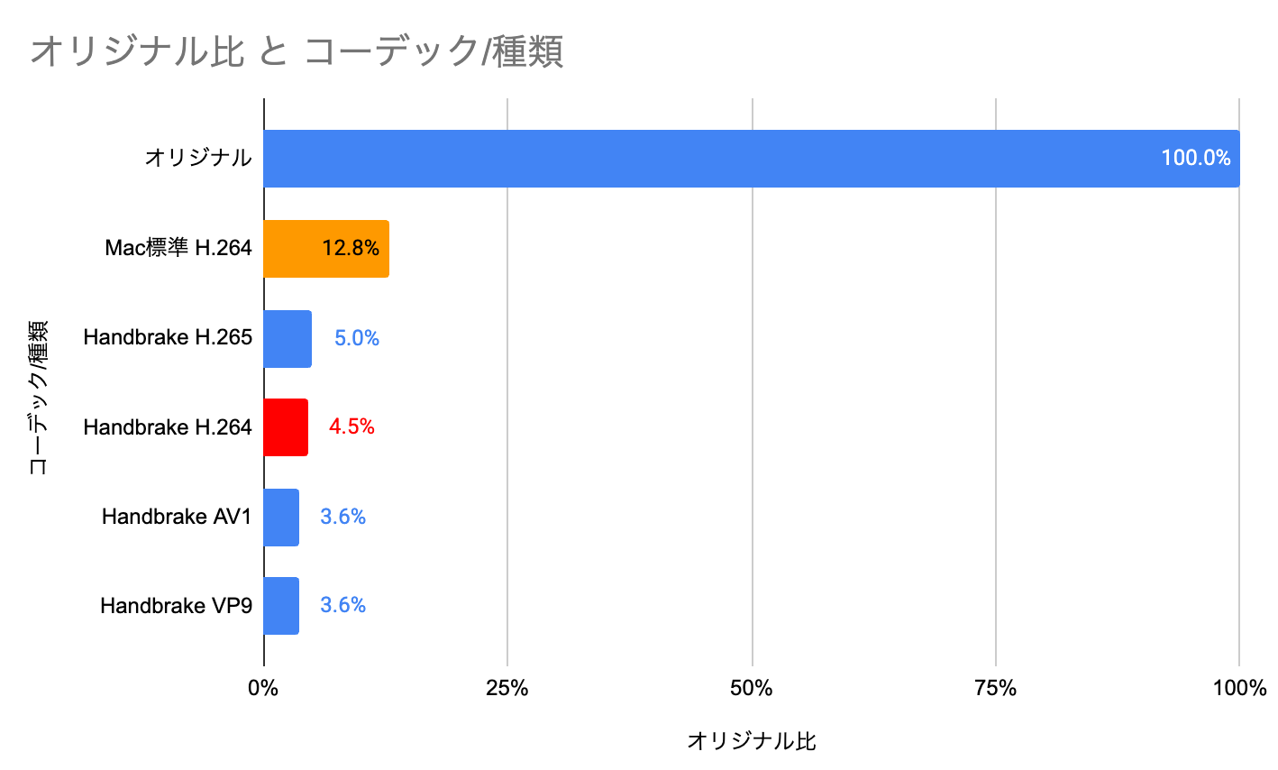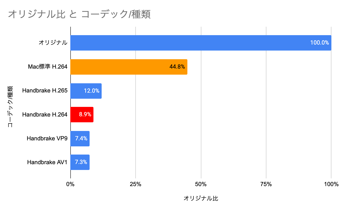 | コーデック/種類 | サイズ (MB) | オリジナル比 |
