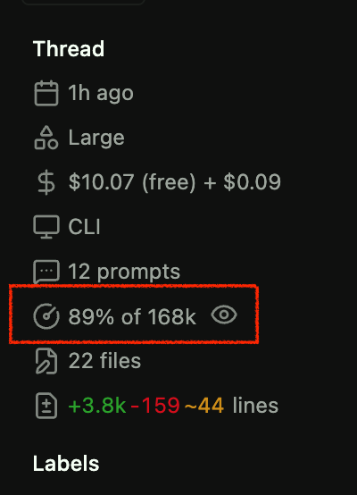 で amp の CEO が言ってるが、以前は 1M contextへの対応をうたっていた。実際、数日前に使った時は Maxのコンテキストサイズが 986k と表示されており、かなりでかいコンテキストを扱える状態になっていた。